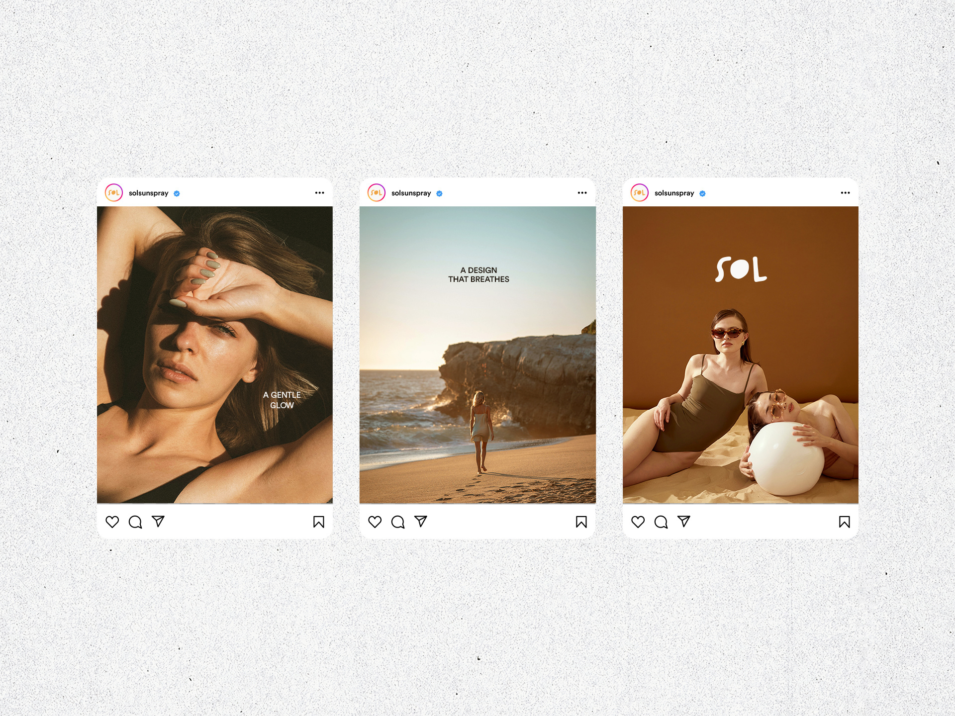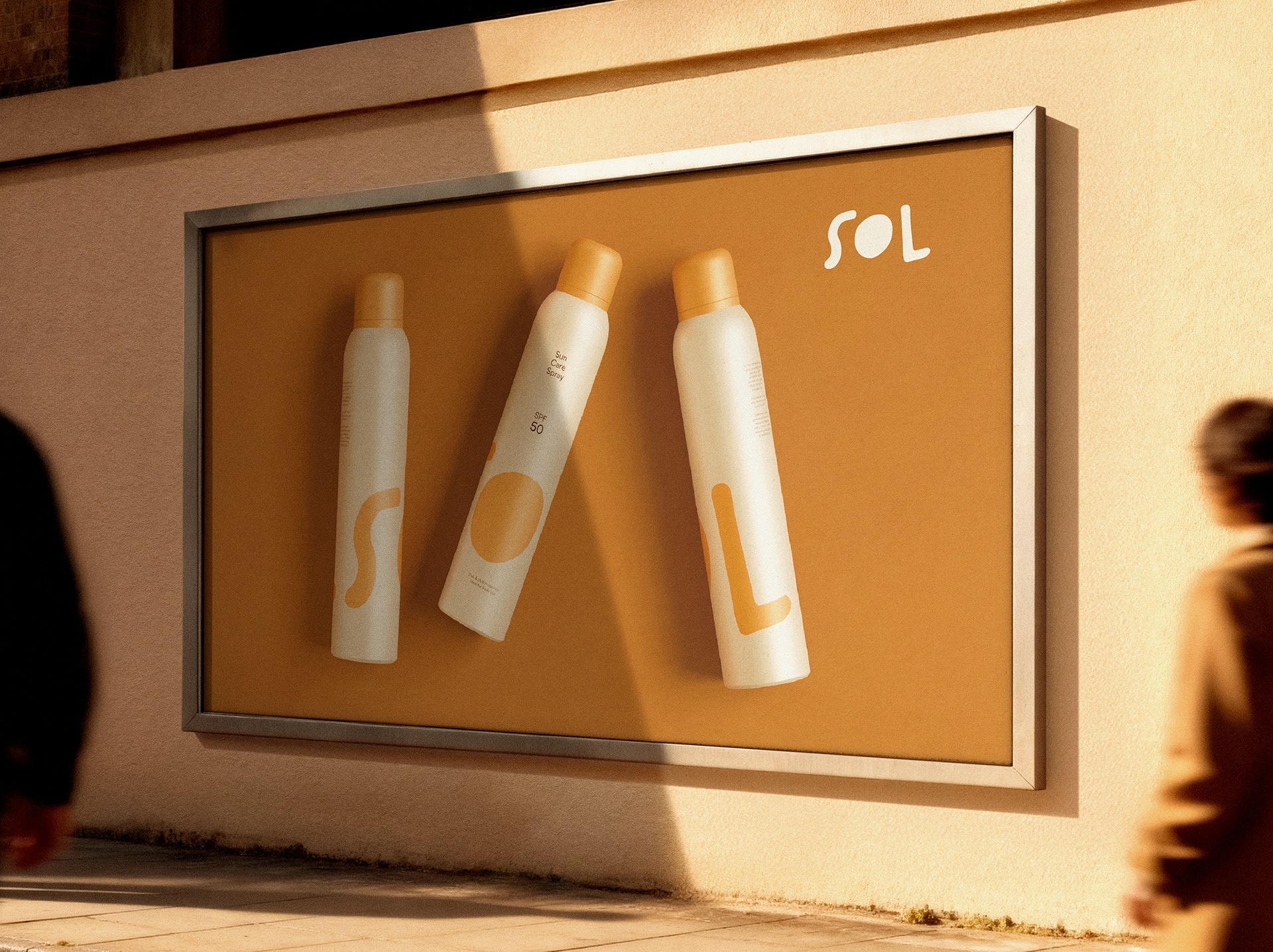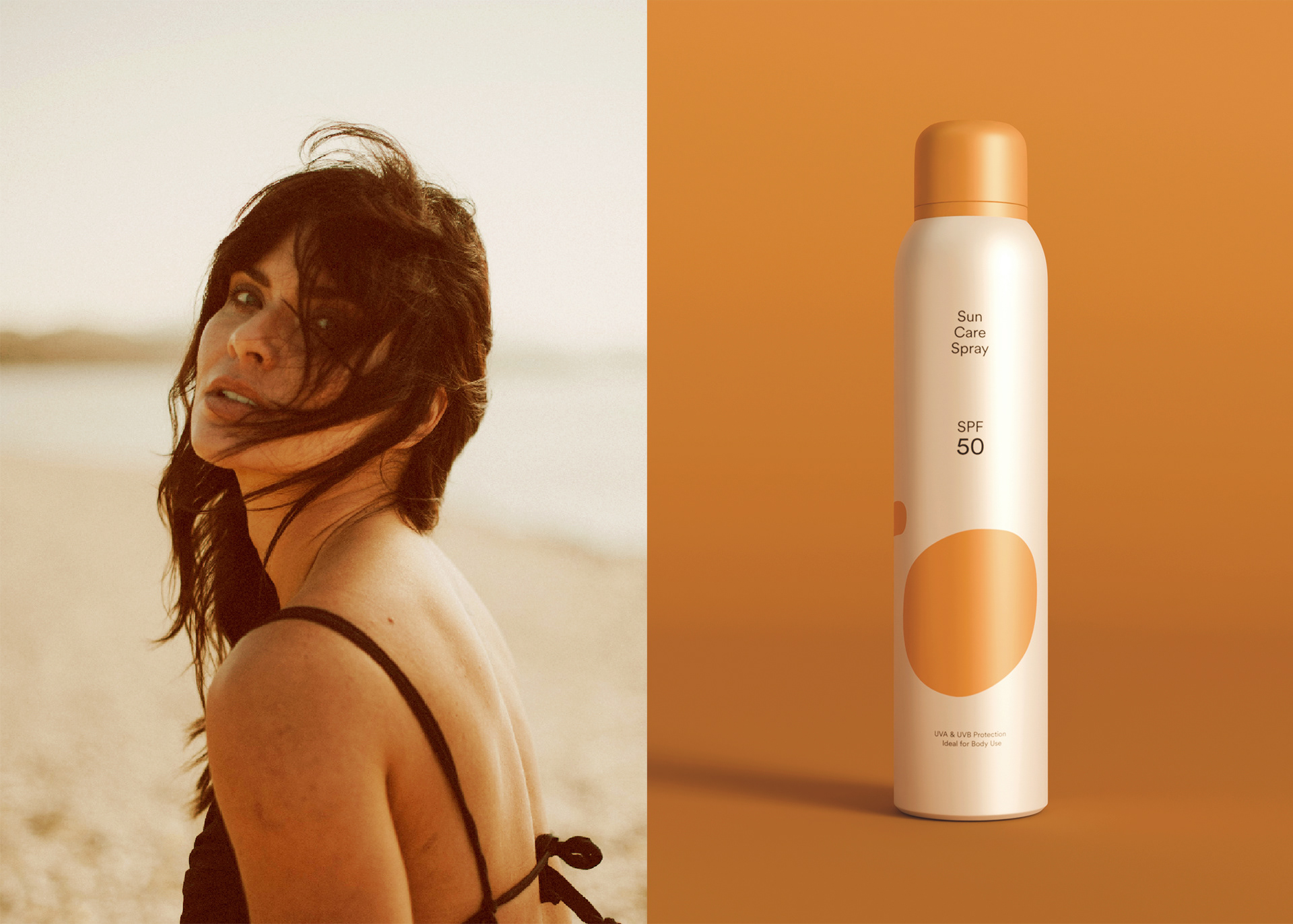 SOL je sprej za sunčanje osmišljen da štiti i hidrira kožu, spajajući funkcionalnost sa estetikom. Minimalni dizajn i topli narandžasti detalji odražavaju modernu ravnotežu mira i energije, dok kružni logo suptilno simbolizuje sunce i osjećaj kretanja.
